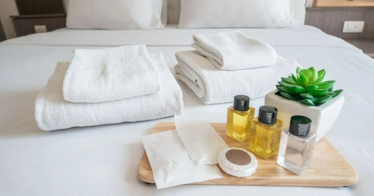 Freshly laundered bed linen, duvets, towels, and bath mats